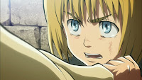 After watching this scene, this gave me a general idea on how the government works in this series. It feels like that they are a bunch of corrupt corporate oafs sitting in their high chairs who just think of the present, and not think of the future possibilities that lies ahead of them. So yeah, Eren and Armin's fear of a possible Titan breach finally happened. The arrival of the Titans gave me this impression that these beings came from outer space thanks to the entrance of one Titan larger than the average Titan. As expected, humans start to run away and to those humans who want to help fight back these creatures, they ended up losing their courage once they come face to face to one Titan.